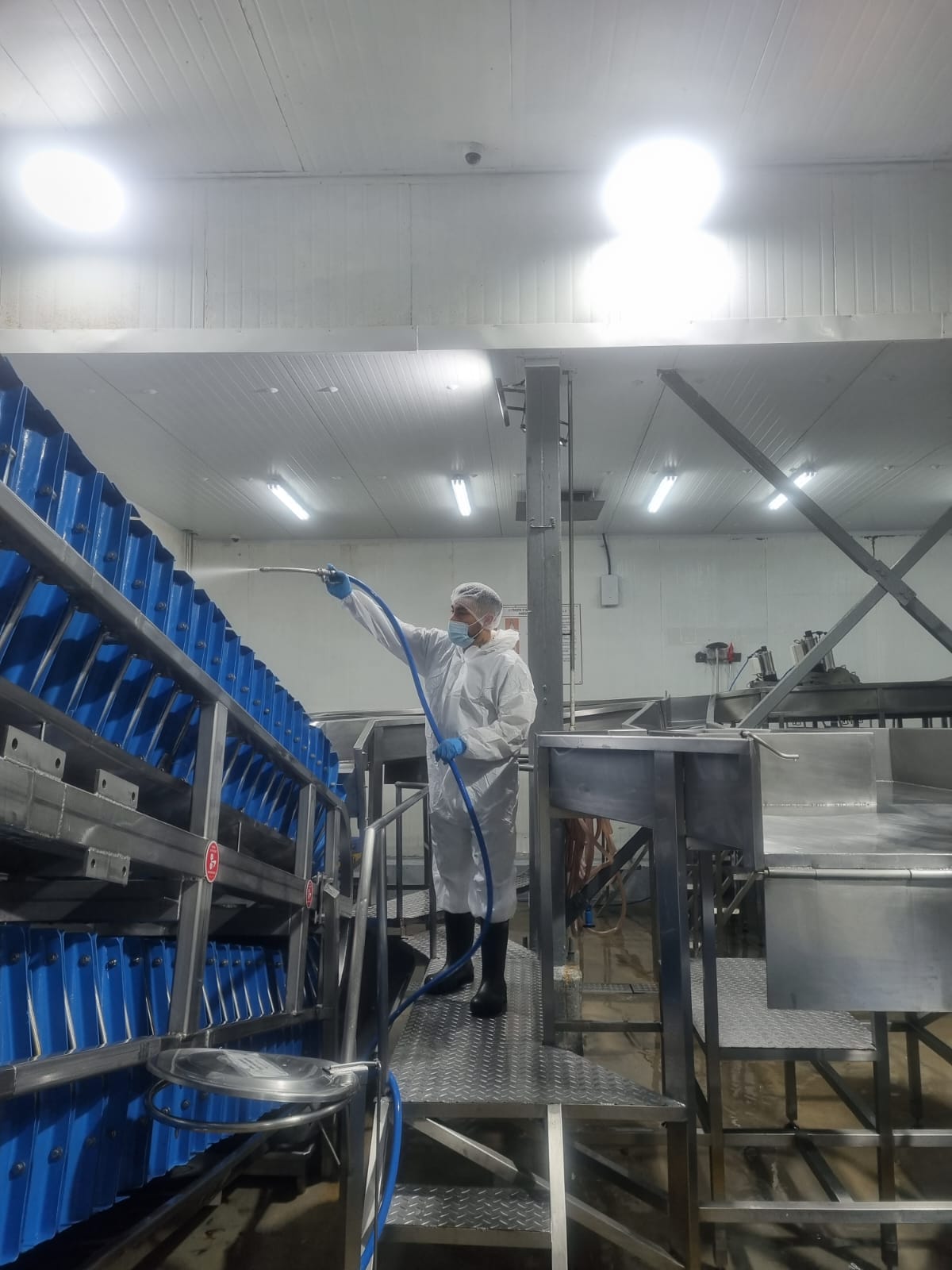 Ejecutamos la limpieza profunda y sanitización de una cámara de frigorífico perteneciente a AquaChile, asegurando un entorno higiénico y seguro para la conservación de productos. Nuestro servicio incluyó la extracción de residuos líquidos y sólidos, aplicación de desinfectantes autorizados y protocolos de sanitización especializados, con el objetivo de cumplir los estándares exigidos por la industria acuícola. Gracias al trabajo de nuestro equipo capacitado y al uso de maquinaria adecuada, garantizamos un proceso eficiente que minimizó los riesgos ambientales y optimizó las condiciones de higiene en la faena.