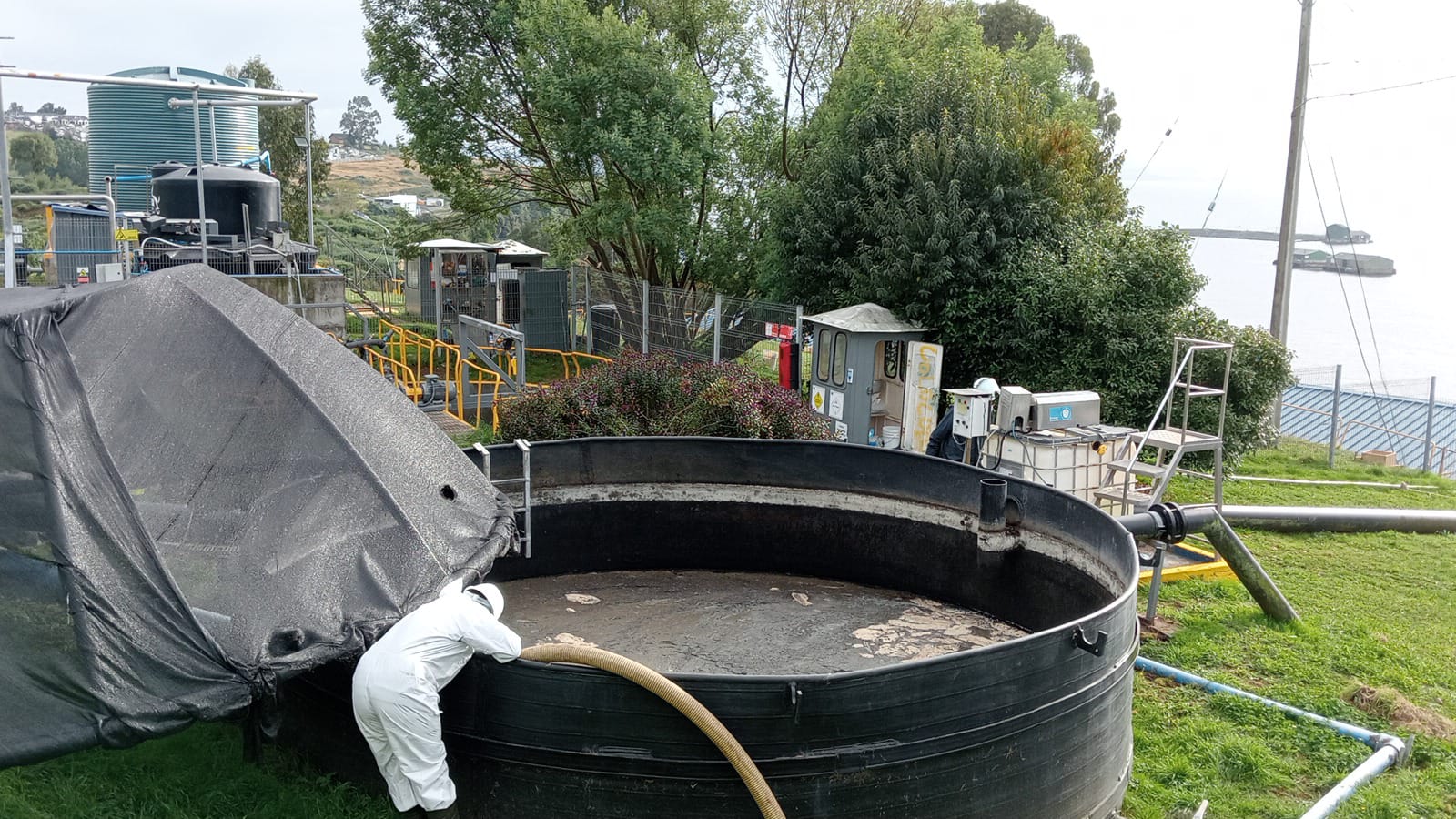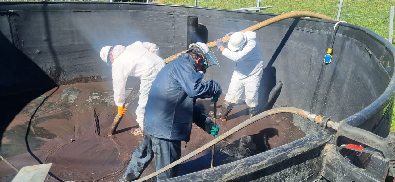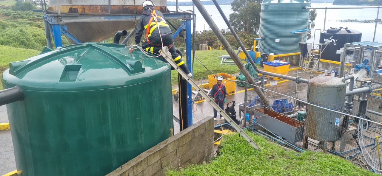 El 11 de abril de 2025, Soluciones Chiloé realizó un mantenimiento preventivo en la planta de RILES de AquaChile, en el marco del cierre de temporada. El servicio incluyó: Medición de gases en cada estanque para garantizar condiciones seguras antes de la intervención. Limpieza completa de todos los estanques de la planta, con aplicación de detergente alcalino y desinfectante concentrado al 15%. Desinfección final mediante fumigadora industrial. Retiro de 44 m³ de lodos acumulados mediante camión limpia fosas Mercedes de 10 m³, realizando varias vueltas hasta completar el vaciado. El trabajo se ejecutó exitosamente cumpliendo protocolos de higiene y seguridad, sin incidentes reportados. Se recomienda mantener un calendario regular de limpieza post-temporada y revisar la escalera del estanque de 100.000 litros, ya que presenta óxido.