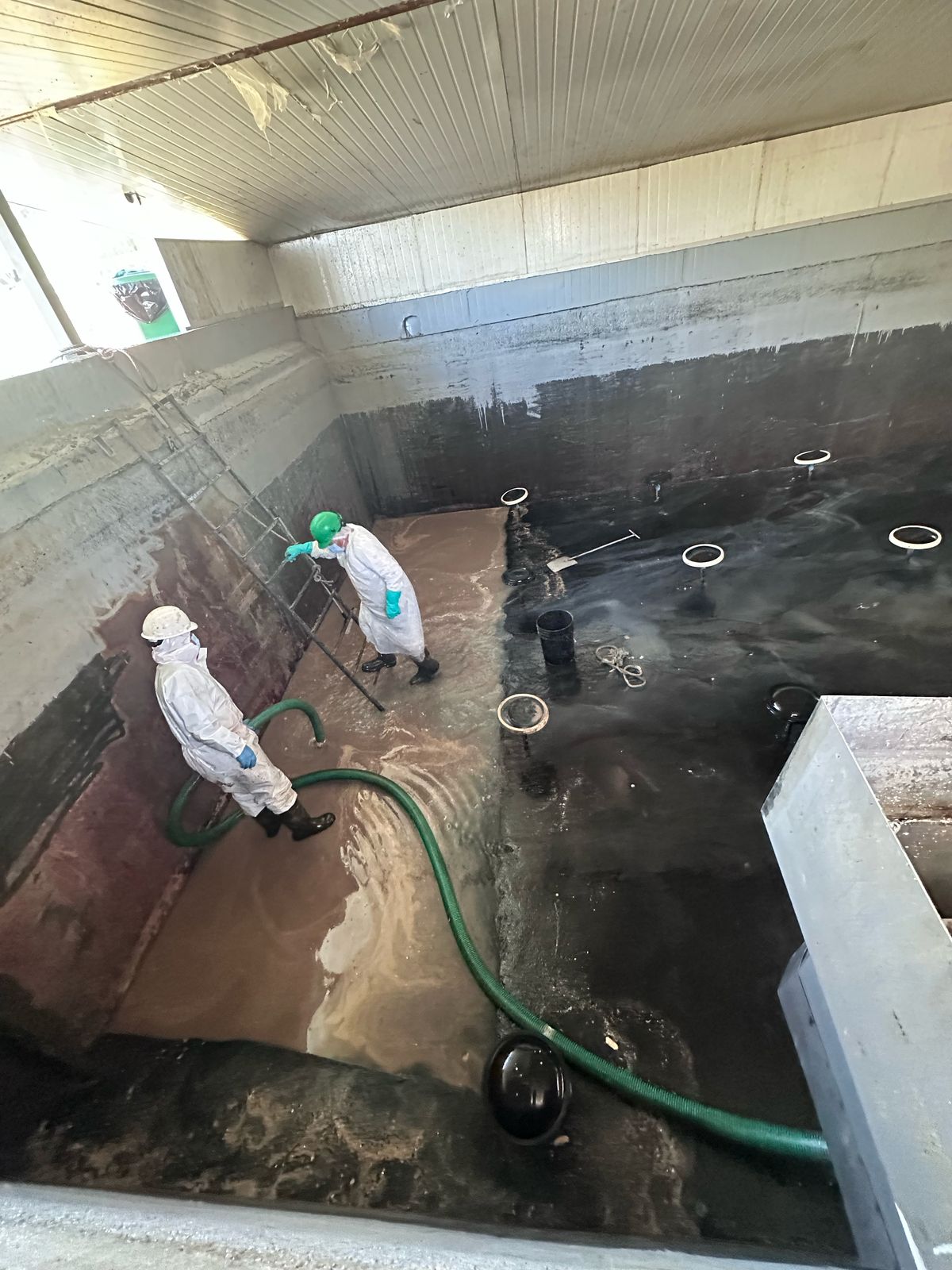 El 6 de abril de 2025, Soluciones Chiloé realizó un servicio de limpieza en la planta de RILES de Salmones de Chile, enfocado en la pileta de ecualización y el estanque de desinfección. Las labores incluyeron: Limpieza de la pileta de ecualización y del estanque de desinfección. Extracción y retiro de 6 m³ de lodos mediante camión limpia fosas. Lavado de superficies internas con hidro lavadora a presión y escobillones industriales para garantizar una limpieza profunda. El trabajo se ejecutó exitosamente cumpliendo con protocolos de seguridad y normativas ambientales vigentes. Se recomienda realizar este mantenimiento de manera periódica para asegurar el correcto funcionamiento del sistema.